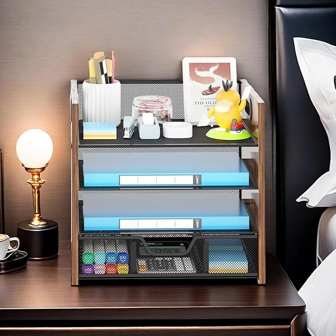 - 4-Tier Desk Organizer: Efficiently organize your workspace with a sturdy 4-tier design, offering ample space for files, papers, and supplies.