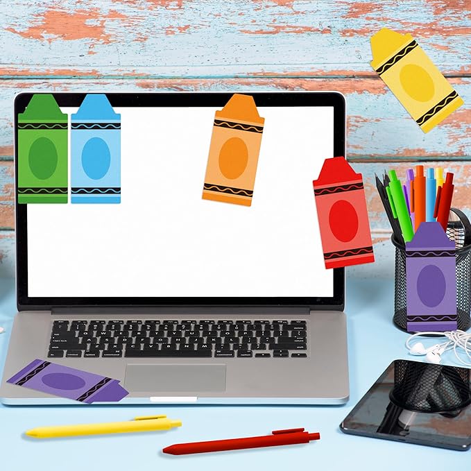 - Perfect for Daily Tasks and Planning:Our set includes 24 crayon-shaped sticky notes (4 notepads per color, 30 sheets per pad, totaling 720 sheets), 24 colorful ribbons, and 24 colorful pens. This comprehensive combination is ideal for adding a touch of whimsy to your daily tasks and enhancing productivity. The vibrant colors and long-lasting ink ensure your notes stand out, making them perfect for journaling or planning.