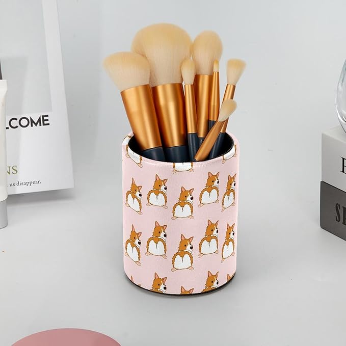 corgi dog (2) Desk Pen Holder Stand Pencil Cup Pot Desk Organizer Makeup Brush Holder