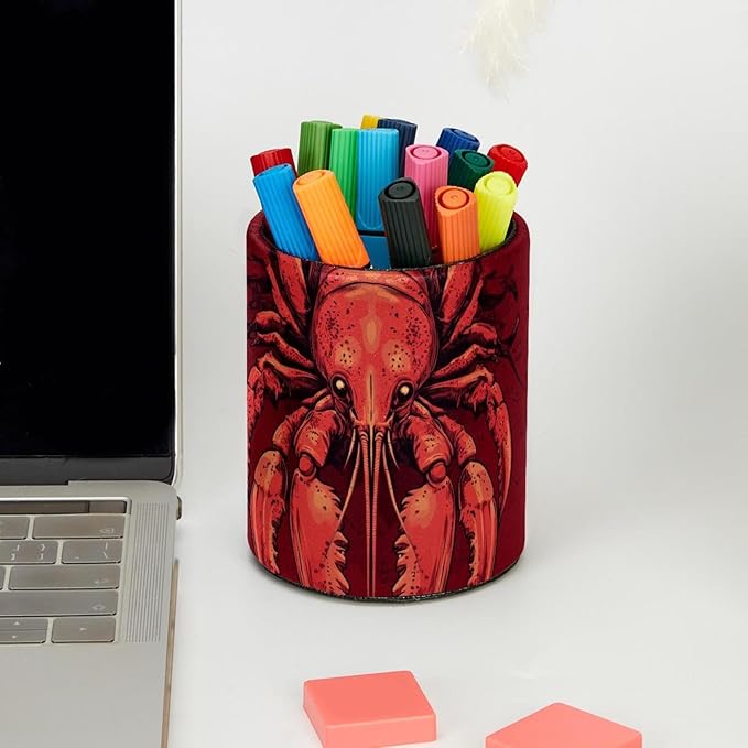 _Red lobster (1) Pencil Box, Multiple-Use Desk Writing Stationary Organizer Pen Holder Cups Office School Supplies Storage