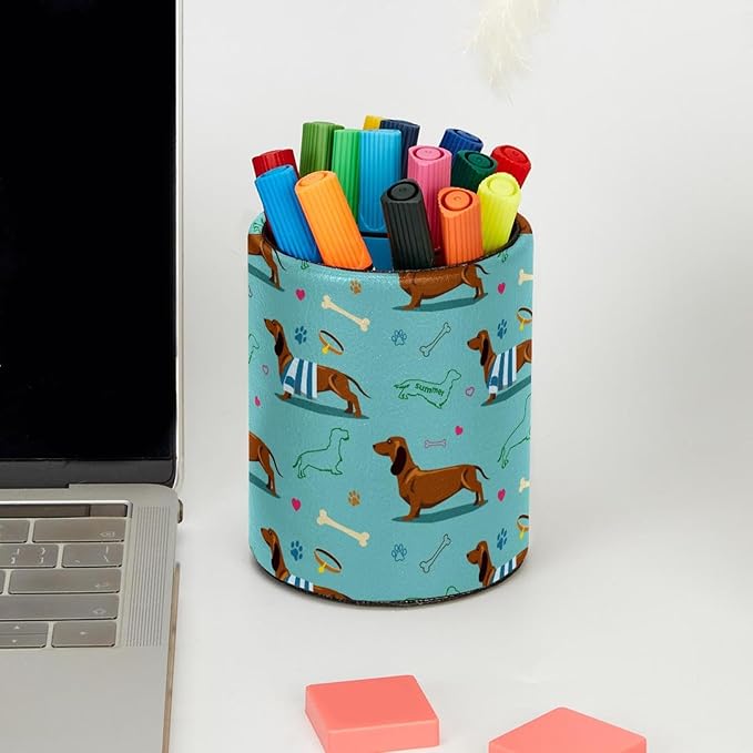 Brown Dachshund Dog Blue Pen Holder Pencil Holder for Desk Pen Pencil Organizer Cup office