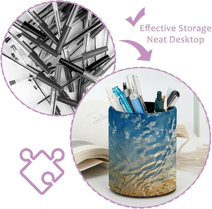 Pencil Cup Holder Desk Organizer, Pen Pot Pen Holder Container Desktop Stationery Organizer Table Flower Pot Makeup Brush Holder, Blue Sky Sand