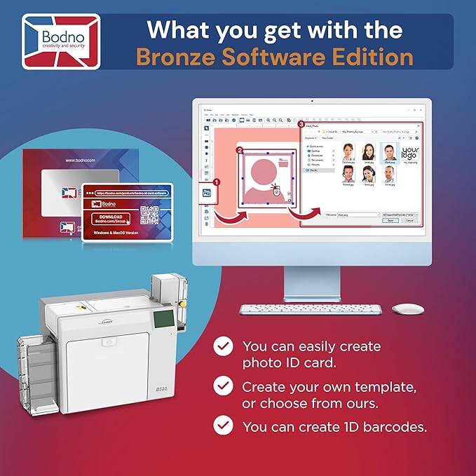 Bodno Seaory R330 Retransfer Dual Sided ID Card Printer & Complete Supplies Package ID Software and Camera - Bronze Edition