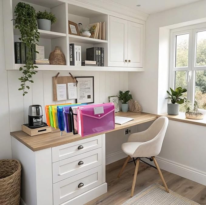 7 Pack Plastic Expanding File Folders, Folders For Documents With Snap Closure, Assorted Colors, Transparent Envelopes, Documents Holder,Paper Organizer, Waterproof, Fit Letter/A4 Size (A4) (Colorful)