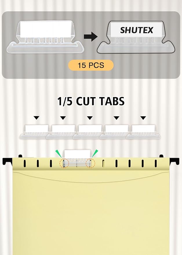 - 【INSERT FILE FOLDER TABS】: Traditional plastic tabs, all clear, and paper inserts that you write on to identify the folder's contents. The tabs can be placed at various positions along the top of the hanging folder