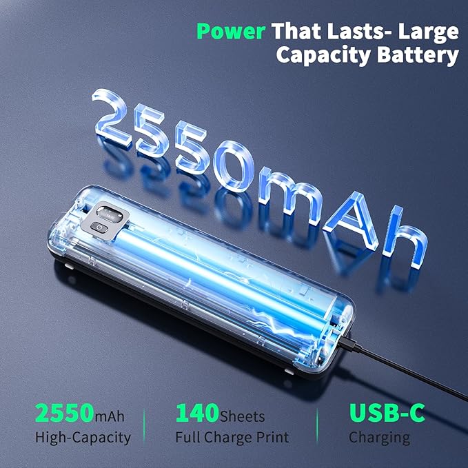 - 【Long-Lasting Battery】With a powerful 2400mAh battery, the RONGTA F82 can print up to 210 pages on a single charge. Equipped with a standby protection mode, it ensures your portable printer is ready for use when you need it most—whether for long trips or business meetings.