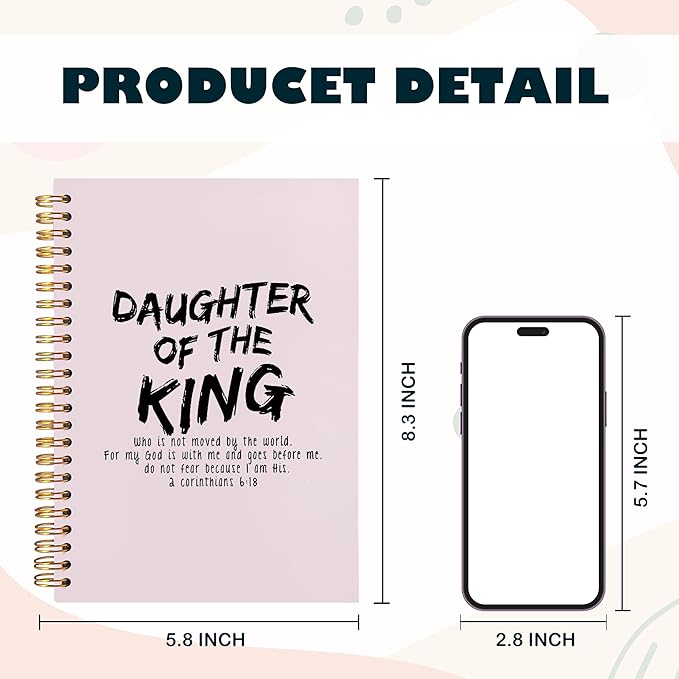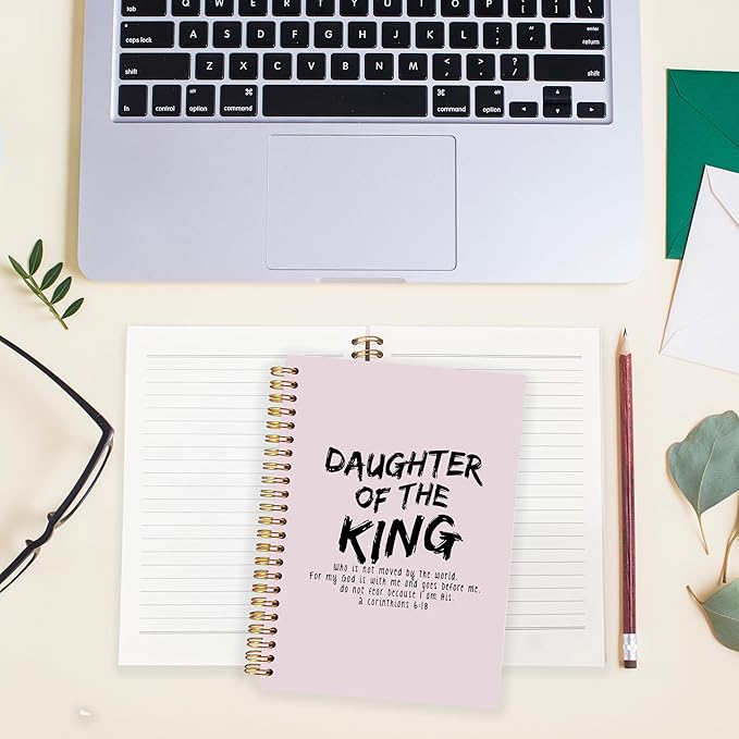 BearCake Prayer Journal for Woman,Christian Bible Journal,Christian Gifts for Women, Bible Notebooks for Note Taking, Daughter of the King,Spiral bible Notebook 5.5x8.3 Pink