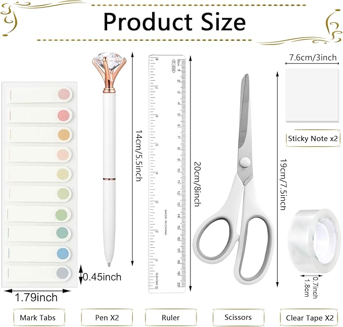 - 【Easy To Carry】:You can put these pink desk accessories in the drawer or desk at will, it won't take up too much space. The clips are equipped with a lattice storage box for easy organization use and storage.You can also put school supplies set in your handbag or schoolbag and take them anywhere.