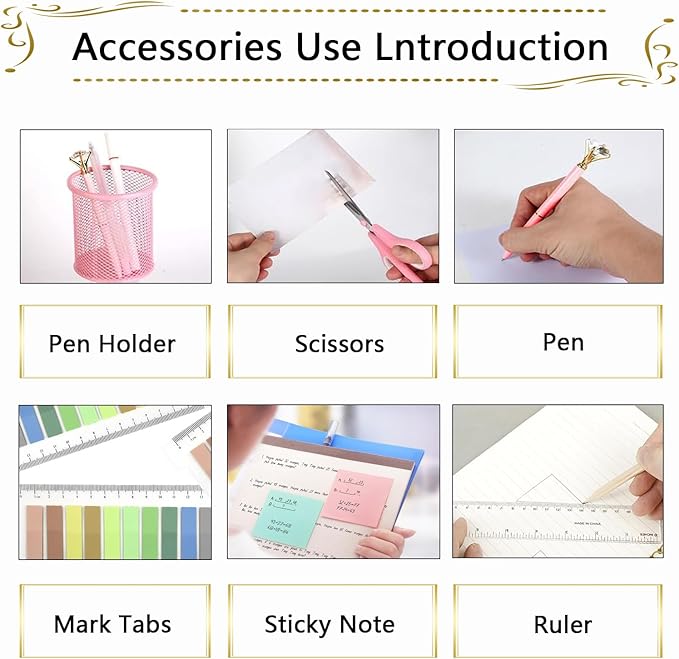 - 【Wide Range of Use】: Our pink desk accessories are practical and beautiful, It enhances the aesthetics and modernity of your office while keeping your desk neat and organized.This office supplies set includes several of the most commonly used work and study tools, suitable for many occasions. suitable for many occasions, such as schools, offices, meeting rooms, etc.