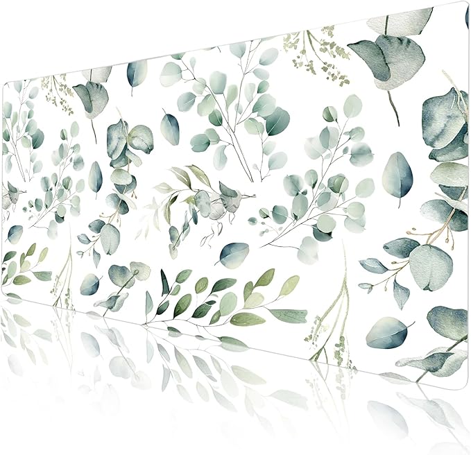 Colorful Star Large Mouse Pad, PU Leather Waterproof Desk Mat, Computer Gaming Mouse Pad, XXL Full Table Mousepad Non Slip Desk Pad for School Office Home 31.5" x 15.7" - Fresh Eucalyptus Leaves