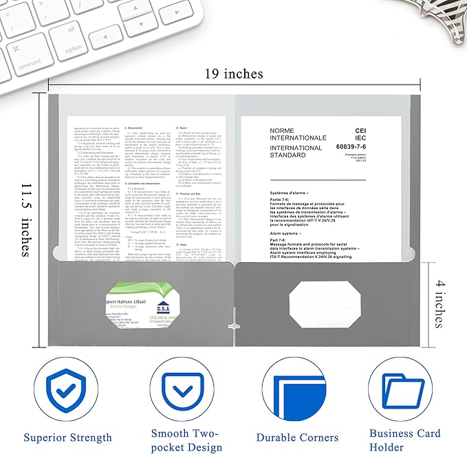 - PACKAGE INCLUDES: 50 packs grey file folders with 2 pocket folders and 2 business card slot, 100 plus Sheet Capacity, enough use for you, perfect for school, paperwork, office, business.
