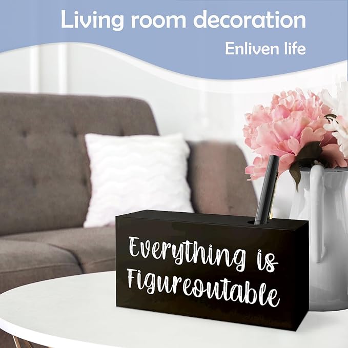 SNNDER Everything is Figureoutable Single Pen holder for Desk, Inspirationsl Desk Decor, Positive Gifts for Women Men, Motivational Fountain Pen Holder for Home Office Desk Accessories
