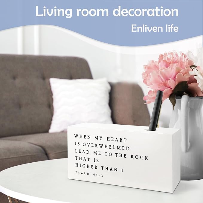 SNNDER Inspirational Christian Single Pen holder for Desk, Christian Religious Gifts for Women Men, Psalm 61:2 Bible Verses Fountain Pen Holder for Home Office Desk Accessories