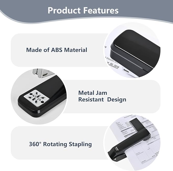 - Ultra-Durable ABS Construction : Built with high-quality ABS material, this stapler resists drops and daily wear. The reinforced metal hinge ensures long-term reliability, making it a sturdy companion for offices, schools, or home use