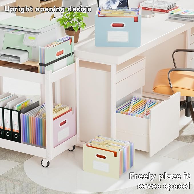 - EASY ACCESS:No lid for instant access. Monthly and blank multi-colored removable labels are easy to apply and mark, helping you find information quickly. Blank stickers allow you to write text on labels, customize your own tabs, and create your own document classification themes.