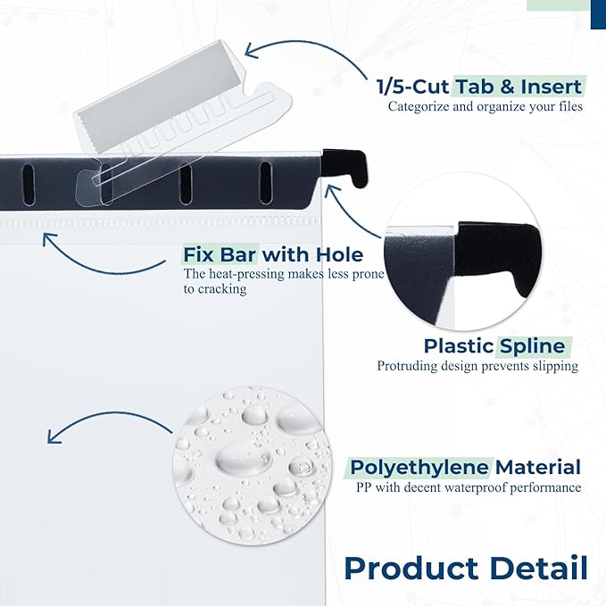 - Filing Solution - The transparent design of poly hanging folder provides clear visibility of your documents for easy identification. The staggered 1/5-cut tabs along the top enable organized filing and quick access to your files