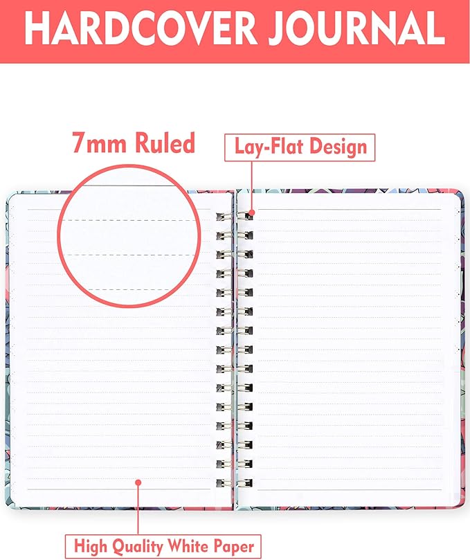 - PREMIUM A5 SPIRAL NOTEBOOK – This spiral-bound notebook includes 120 high-quality, college-ruled pages designed to prevent ink bleed-through, providing a smooth writing experience for all your note-taking and journaling needs.