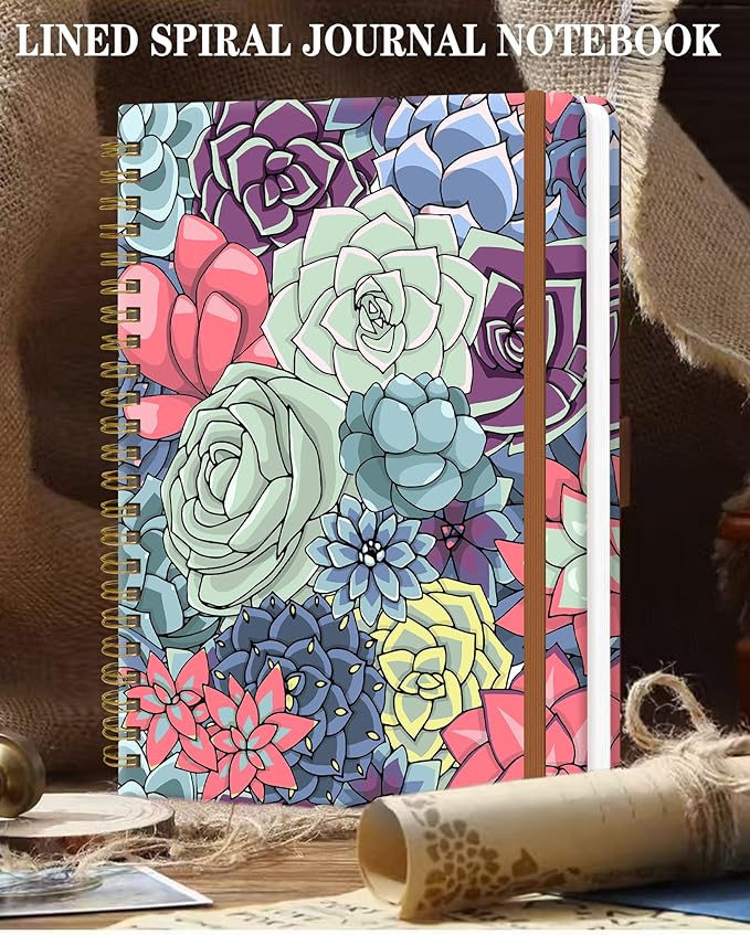 Spiral Journal Notebook for Women, Hardcover A5 College Ruled Notebook, 120 Pages, Thick Paper, Cute Lined Journal for School, Office & Work, 6 x 8.4 in(Cute Succulents Plant)