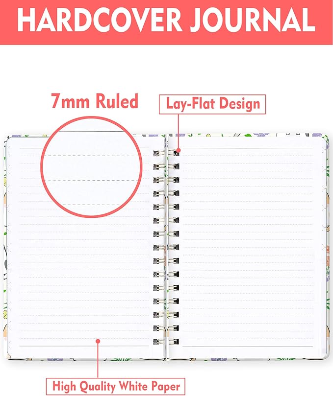 - PREMIUM A5 SPIRAL NOTEBOOK – This spiral-bound notebook includes 120 high-quality, college-ruled pages designed to prevent ink bleed-through, providing a smooth writing experience for all your note-taking and journaling needs.