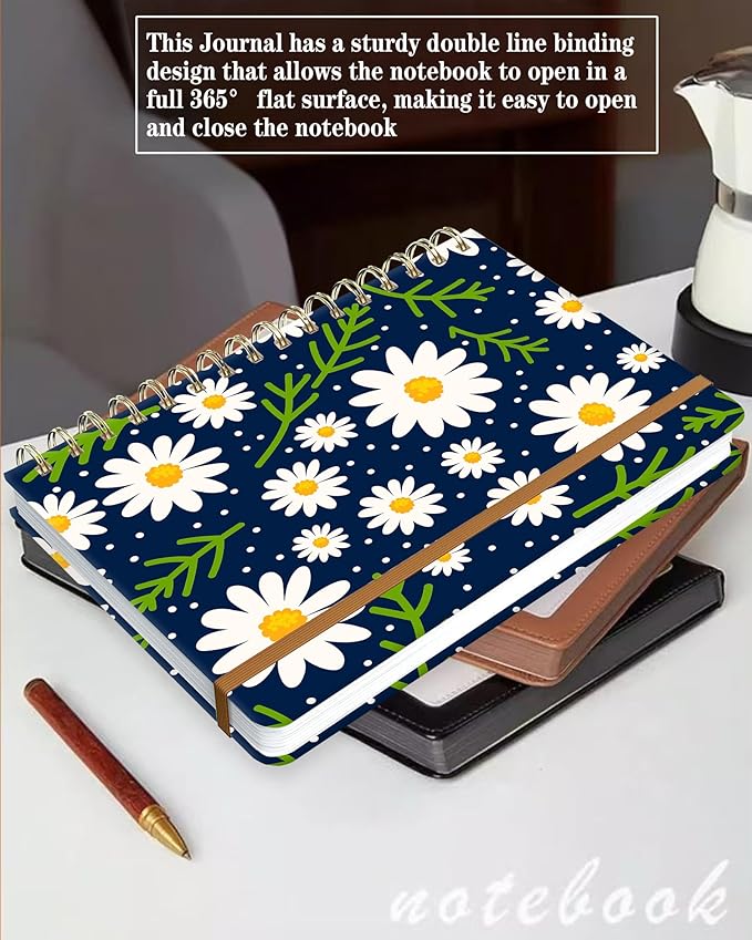 WLPFSAHF Spiral Journal Notebook for Women, Hardcover A5 College Ruled Notebook, 120 Pages, Thick Paper, Cute Lined Journal for School, Office & Work, 6 x 8.4 in(Little Daisy Flower)