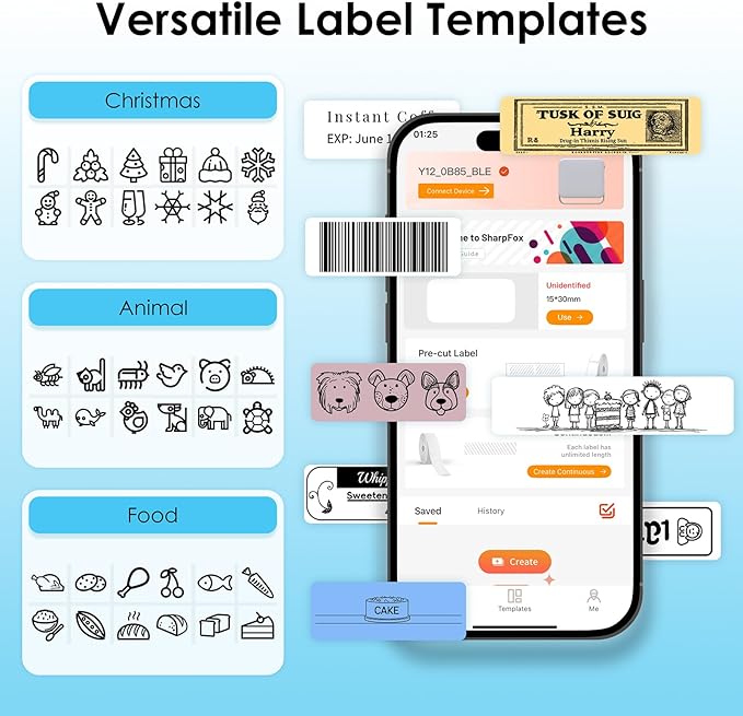 - Easy-to-use App & DIY Labels: KNAON Thermal Shipping Label Printer offers a vast selection of pre-designed templates, including 3,000+ templates, 5,000+ icons, and 100+ fonts available in the app. Designed for both professional and personal use, it supports various thermal paper sizes, ensuring effortless customization for all your labeling needs. Ideal for printing DIY barcode labels, name tags, price tags, and various small thermal labels.