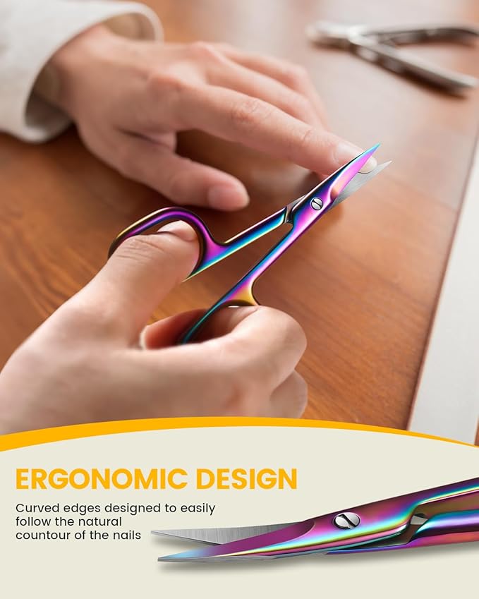 BEZOX Curved Nail Scissors – Fingernail Toenail Scissor for Women, Small Manicure Scissors for Thick Nails, Ultra-Sharp Curved Blades for Precision Grooming - Rainbow