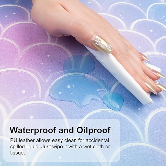 - Waterproof & Easy to Clean Desk Cover - Made of water-resistant and durable PU leather, this cute mousepad help prevent your desk from damages such as scratches, stains, spills and heat. Easy to clean, just wipe with a wet cloth or tissue.