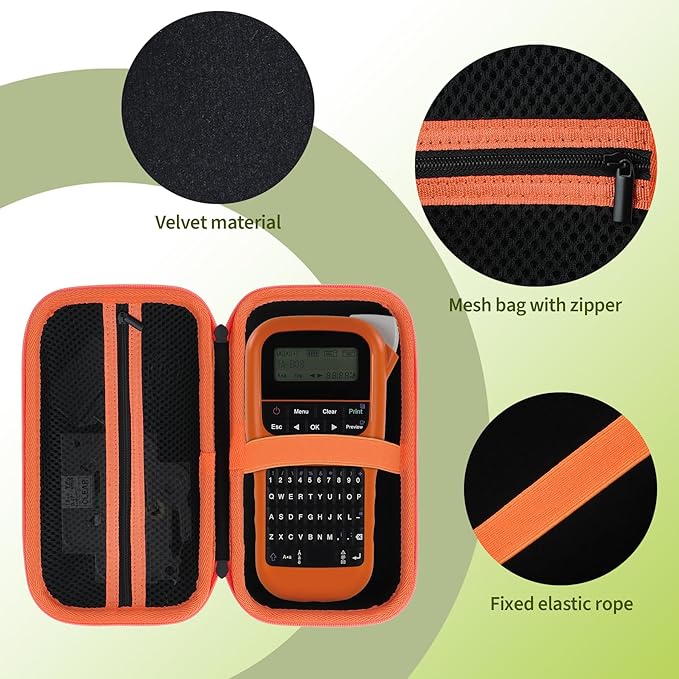 - Convenient design: Reasonable and practical storage box design, compatible with Brother P-Touch PTH110 or Brother PTH111 Pro or Brother PTE110 label maker and accessories. The upper layer of the box has a zippered mesh bag that can store chargers and more accessories. The lower layer is designed specifically for label machine storage and has an elastic rope for fixation. In addition, it also comes with a portable hand strap for easy carrying when going out