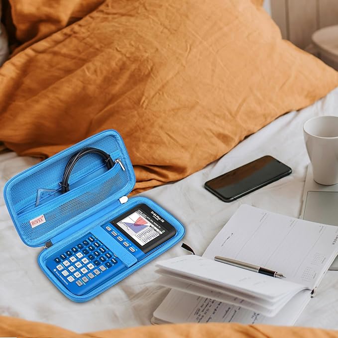 BOVKE Hard Travel Case for Texas Instruments TI-84 Plus CE/TI-84 Plus/TI-83 Plus CE/TI-83 Plus/Casio fx-9750GIII Graphing Calculator, Mesh Pocket for USB Cables, Manual, Pens, Accessories, Blue