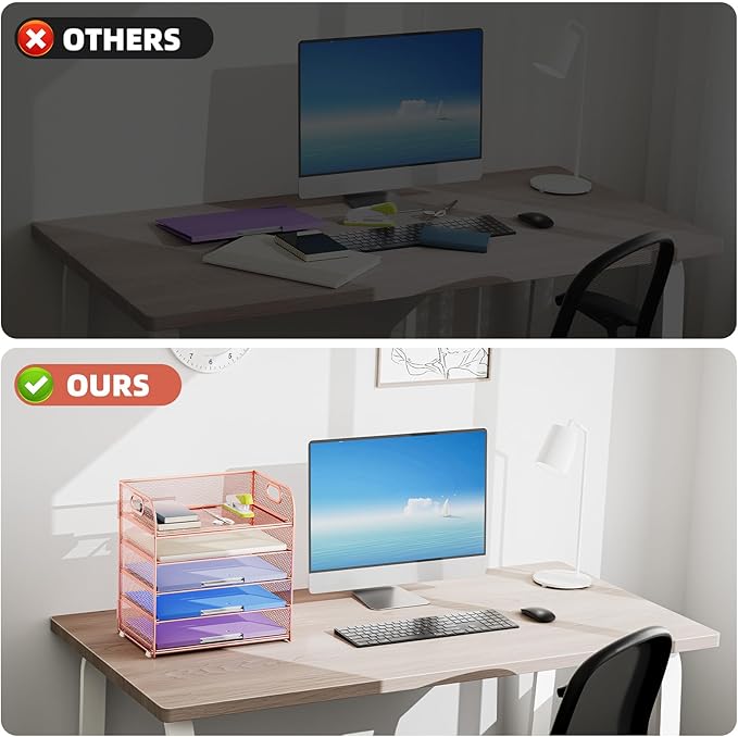 - 【PREMIUM QUALITY】The mesh desktop file organizer is made of lightweight durable metal mesh and reinforced with a solid steel frame that makes it have long-lasting strength and reliable performance.