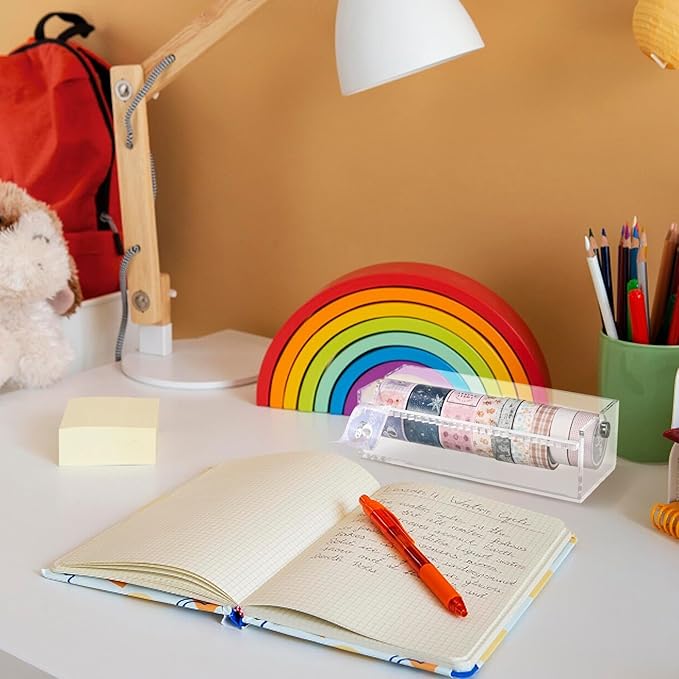 - Acrylic Construction – This acrylic washi tape dispenser is made from high-quality acrylic, offering both durability and long-term use. It helps keep multiple rolls of tape neatly organized in one place, reducing clutter and keeping your workspace tidy.