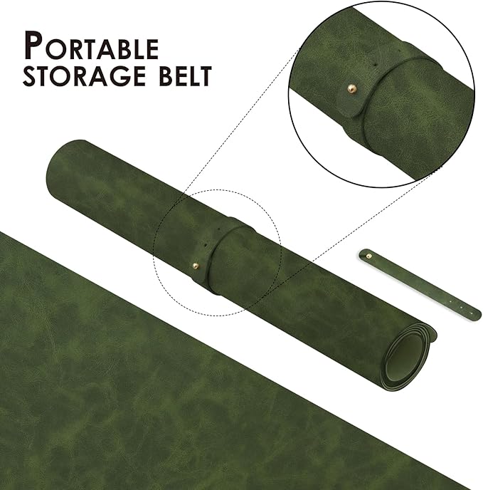 Distressed Leather Desk Mat - Non-Slip PU Desk Pad for Office and Home - Desk Organization and Accessories - Ideal for Large Mouse Pad and Desk Mats on Top of Desks(Forest Green,36"x 17")