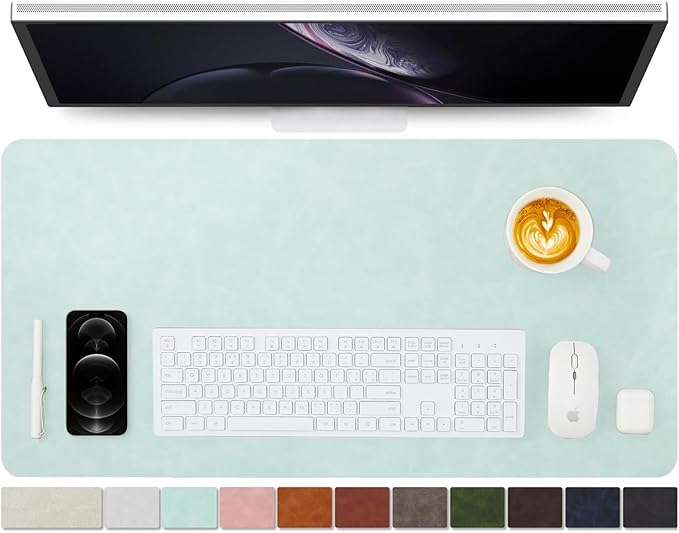 Distressed Leather Desk Mat - Non-Slip PU Desk Pad for Office and Home - Desk Organization and Accessories - Ideal for Large Mouse Pad and Desk Mats on Top of Desks(Mint Green,31.5"x 15.7")