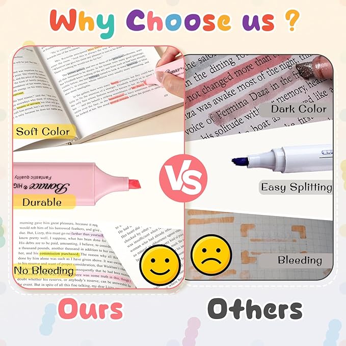 - Pastel highlighter ink is impermeable, allowing you to underline without any worries, great for applying highlighter and emphasizing words and sentences at school, home or office.