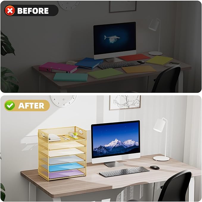 - 【MULTI-PURPOSE ORGANIZER】6-tier layered design and large capacity make the paper organizer become an ideal choice for managing all kinds of letter-size letters, paper, books, bills, etc. Let you quickly identify the contents of each compartment super easy