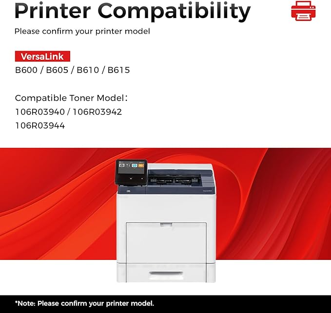 - Compatible Devices : Compatible for Xerox VersaLink B600 B605 B610 B615; Compatible Toner Model:106R03940,106R03942,106R03944 Compatible for Xerox VersaLink B600 B605 B610 B615; Compatible Toner Model:106R03940,106R03942,106R03944