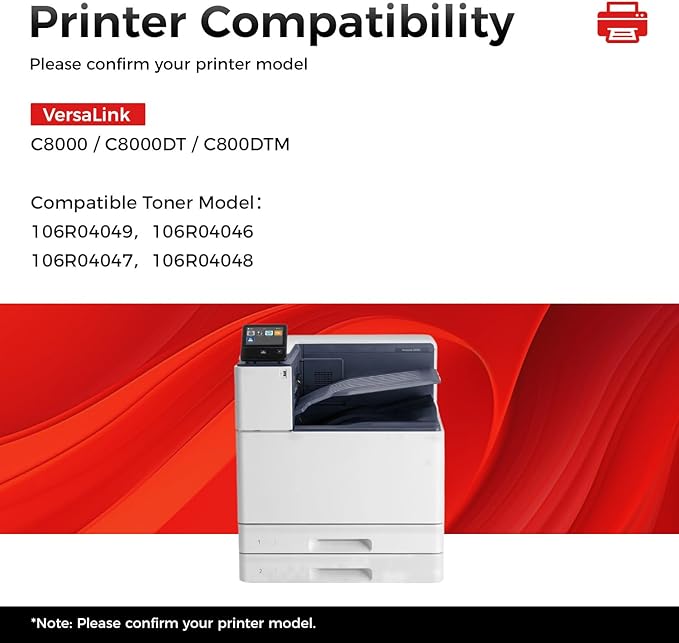 - Compatible Devices : Compatible for Xerox VersaLink C8000 C8000DT C800DTM series Printer. Compatible Toner Model:106R04049, 106R04046, 106R04047, 106R04048. Compatible for Xerox VersaLink C8000 C8000DT C800DTM series Printer. Compatible Toner Model:106R04049, 106R04046, 106R04047, 106R04048.
