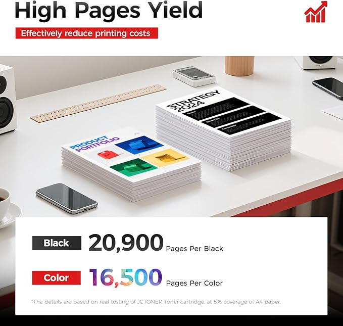 - Yield & Version: 20,900 pages per C8000 Black Toner Cartridge and 16,500 pages per C8000 Color Toner Cartridge(at 5% Coverage). High Yield Version C8000 toner cartridges.