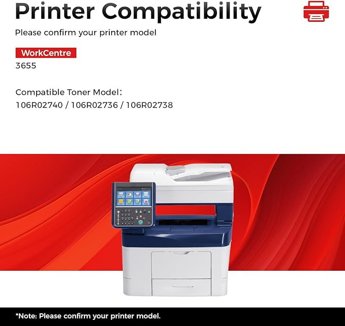 - Compatible Devices : Compatible for Xerox WorkCentre 3655; Compatible Toner Model:106R02740,106R02736,106R02738