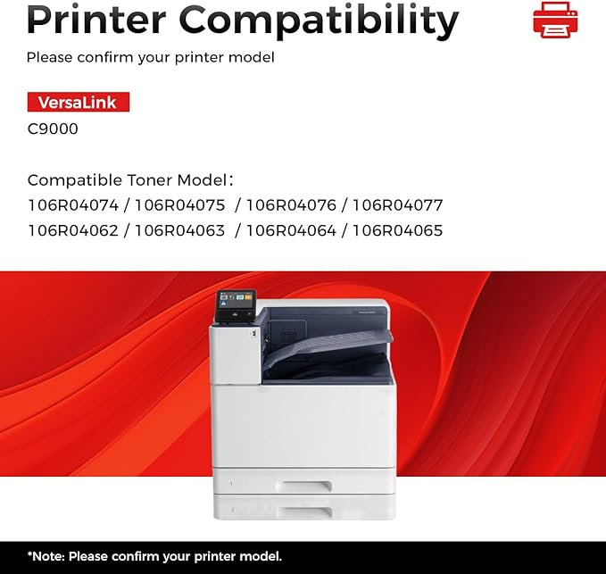 - Compatible Printer: Compatible for Xerox VersaLink C9000 Printer. Compatible Toner Model:106R04074,106R04075,106R04076,106R04077,106R04062,106R04063,106R04064,106R04065.