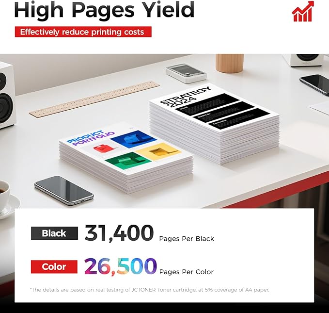 - Yield & Version: 31,400 pages for Black and 26,500 pages Color toner cartridge (A4, 5% Coverage),High Yield Version C9000 toner cartridges.