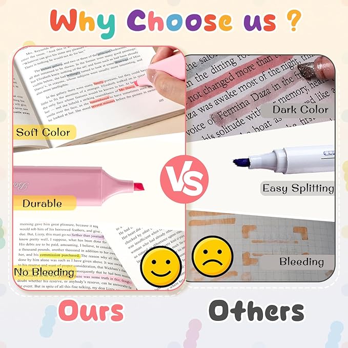 - Pastel highlighter ink is impermeable, allowing you to underline without any worries, great for applying highlighter and emphasizing words and sentences at school, home or office.