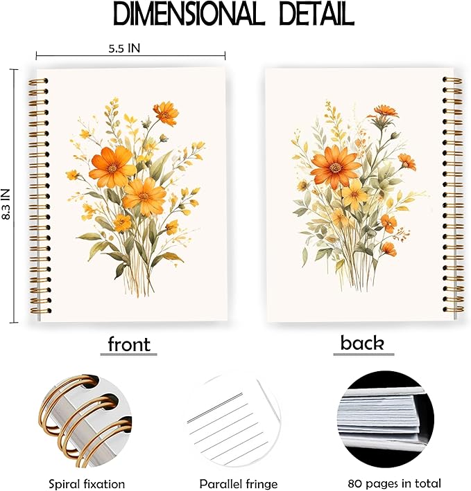 - Size:The size of our spiral notebook is about 5.5X8.3 inches with 80 lined pages for anything you want to write.