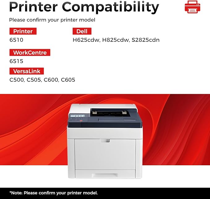 - Compatible Printer: Compatible with Xerox Phaser 6510, Xerox WorkCentre 6515, Xerox VersaLink C500 C505 C600 C605, Dell H625cdw H825cdw S2825cdn laser printer