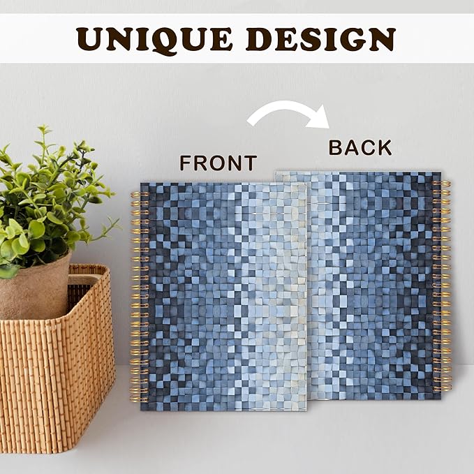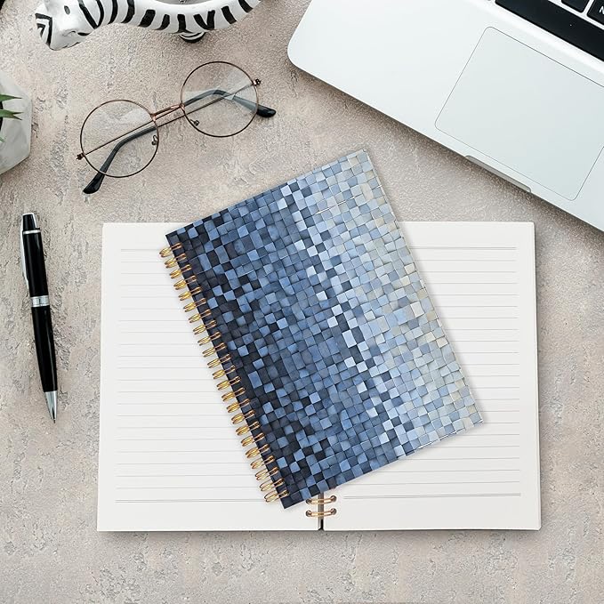 URLLUAE Navy Blue and White Checkered Notebook, Blue Grid Journal for Women Men, Abstract Aesthetic Cube Art Spiral Notebook Journals for Work School Office Supplies Gifts, 5.5x8.3 Inch
