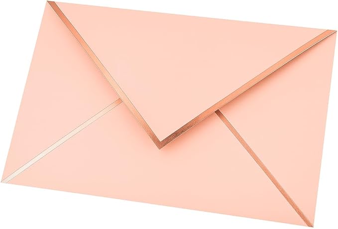 - 50-Pack Set – Includes 50 high-quality Blush Pink with Rose Gold foil border A7 envelopes, each measuring 5.25" x 7.25"