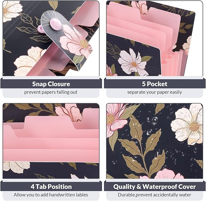 - Quick Access:Each folder features 5 expanding pockets with side openings for easy insertion and removal of documents. Includes 8 writable index labels to keep everything clearly categorized.