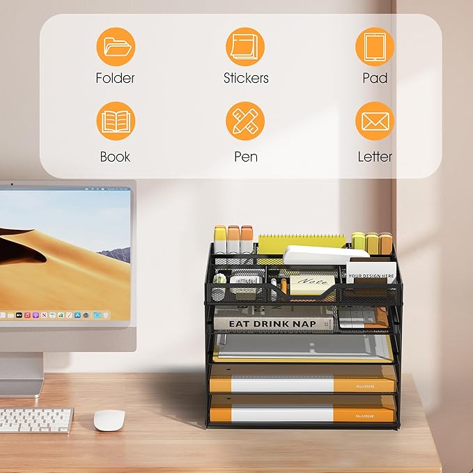 - Quality Materials and Superb Craftsmanship-Featuring a lightweight and durable metal mesh construction with a sturdy frame and powder-coated finish that ensures the desktop file manager won't bend or break when holding large quantities of paper, files and books, the file manager has a smooth finish that complements the office's work decor