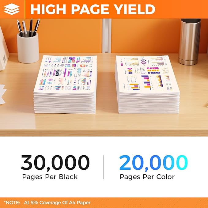 - High Yield: 30,000 pages in TK-8507 Black toner cartridge, 20,000 pages TK-8507 Cyan Magenta Yellow toner cartridge (at 5% coverage letter paper)