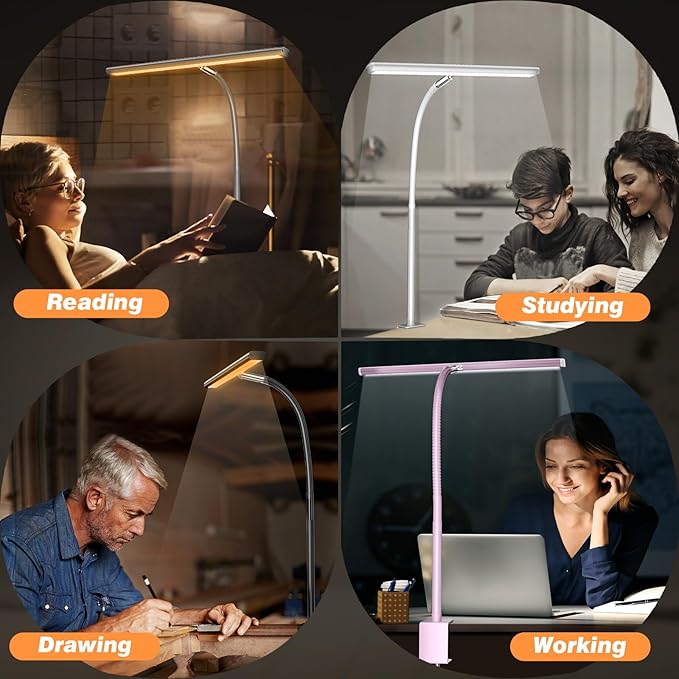 - Stepless Dimming Mode: The desk light offers effortless switching of color temperatures (2700K-6500K) and stepless dimming (1% - 100%) to meet your arbitrary color temperature and brightness needs, providing you with a healthy and comfortable office lighting experience. It is perfect for you and your child to read, work, study, unwind, draw, knitting, sew, craftwork, etc